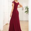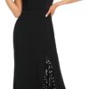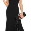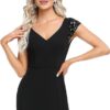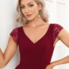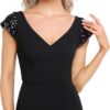 This show-stopping evening dress features sequin cap sleeves and plunging v-neckline, it makes you look charming!