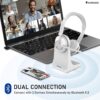 【Dual Connection & Long Bluetooth Range】Bluetooth headset uses Bluetooth 5.0 technology. Boost your efficiency with the ease of connecting two devices at once. Effortlessly transition between computer meetings and incoming phone calls. Our wireless headphones bluetooth coverage of up to 33 feet, the Bluetooth range grants you the flexibility to move around during calls and video conferences.